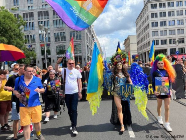 Участие в параде сексуальных меньшинств в этом году приняла организованная колонна под украинским флагом. Украинцы прошли по улицам Берлина под девизом «Be Pride Like Ukraine» – «Будь горд, как Украина». В украинской колонне прошло около 500 человек. В параде принял участие посол Украины в ФРГ Алексей Макеев. Тот самый, который протестует против права возлагать венки к советским мемориалам в Берлине, демонстрации российских и советских символов в Германии 8 и 9 мая. Источник