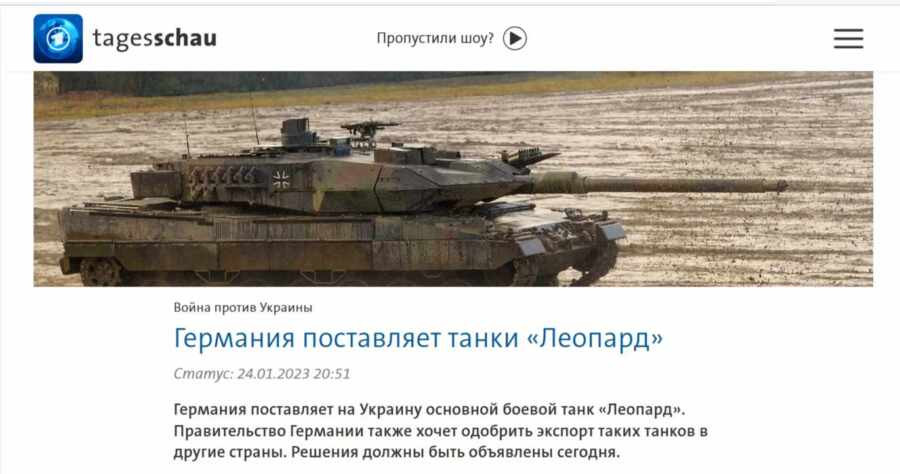«Решение принято: Германия поставит Украине основные боевые танки типа Leopard 2. По информации Spiegel, речь идет как минимум об одной роте Leopard 2A6», — говорится в статье.
