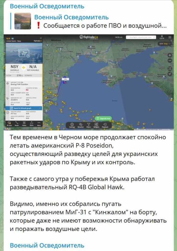 Причем здесь вообще американские самолеты в Черном море, если «Кинжал» для их перехвата в принципе не предназначен?!!! Потому, что это ракета для поражения надводных и наземных целей.