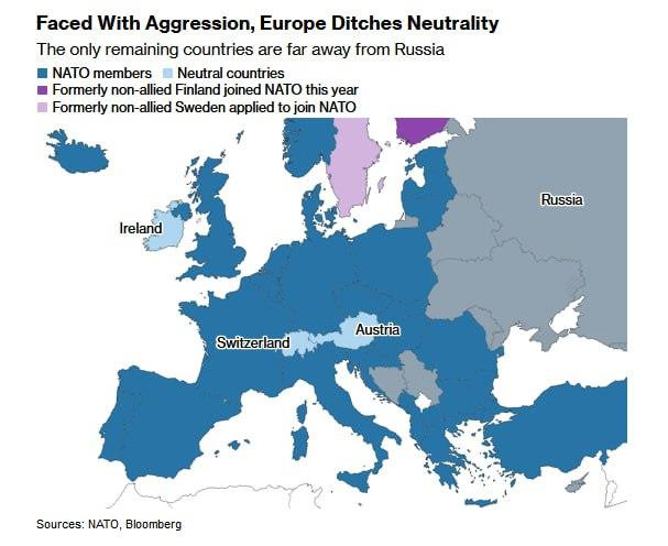 Что же касается Швейцарии, то SVP в середине октября заявила, что страна под их руководством отказывается вредить России и принимать чью-либо сторону во всё более разделённом мире. И для того чтобы закрепить это стремление на законодательном уровне, будет собирать к маю 100.000 подписей, - чтобы инициировать голосование по вопросу о закреплении "вечного" нейтралитета в конституции страны. По информации агентства BIoomberg, это позволит отменить получившие высокую оценку президента США Д. Байдена (и вызвавшие дискуссию и трения в швейцарском обществе) санкции против России.