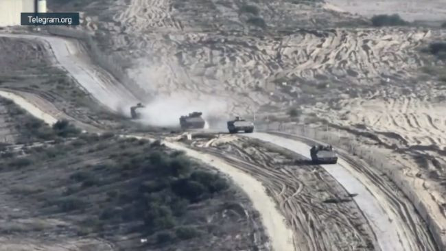 «На кадрах тяжелые БТРы, танки Merkava и ведущие инженерные работы бульдозеры. На втором ролике артиллерия ведет огонь, прикрывая движения колонн техники», — пояснил ТК.