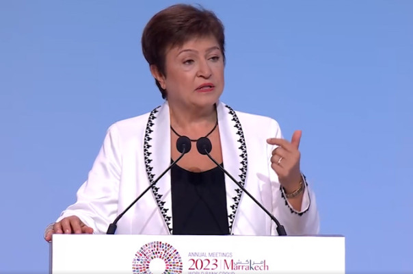 Георгиева отметила, что МВФ «не в восторге от столь быстрого перехода от нулевой до пятипроцентной ставки — но мы добились этого». Никаких шансов на снижение ставок нет, «самолет» мировой экономики начнет проваливаться в «воздушную яму», и директор МВФ призвала всех «пассажиров» пристегнуться: «Итак, теперь мы здесь, наш призыв ко всем: пристегнитесь. Убедитесь, что вы понимаете, что (повышенные) процентные ставки останутся надолго».