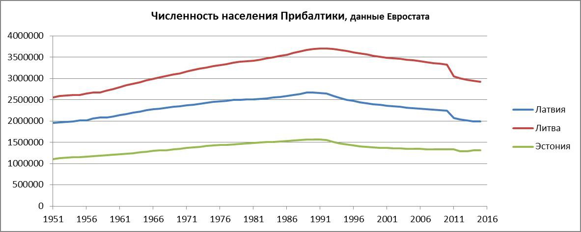 Между тем, страны Балтии все больше напоминают Неуловимого Джо, который уже никому не нужен. Так выглядит динамика численности населения: