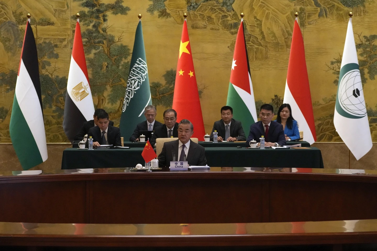 Министр иностранных дел Китая Ван И на встрече с представителями стран-членов ОИС и ЛАГ. Фото: Andy Wong / AP