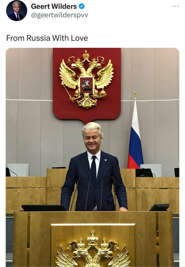 Планирующий возглавить следующее правительство страны ультраправый голландский политик Герт Вилдерс, чья Партия свободы (PVV) получила на нынешних выборах самое большое количество голосов (за него проголосовали 2,4 из 10,3 млн всех избирателей), известен своим отказом присутствовать в палате представителей Нидерландов во время выступления президента Украины Зеленского.