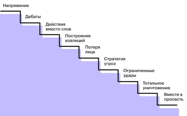 Лестница эскалации американского теоретика этапов мировых кризисов Германа Кана была разработана в 70-х гг. прошлого века, но до сих пор не утратила своей актуальности в части «сверки часов» с тем временем, которое остается до полного краха человеческой цивилизации
