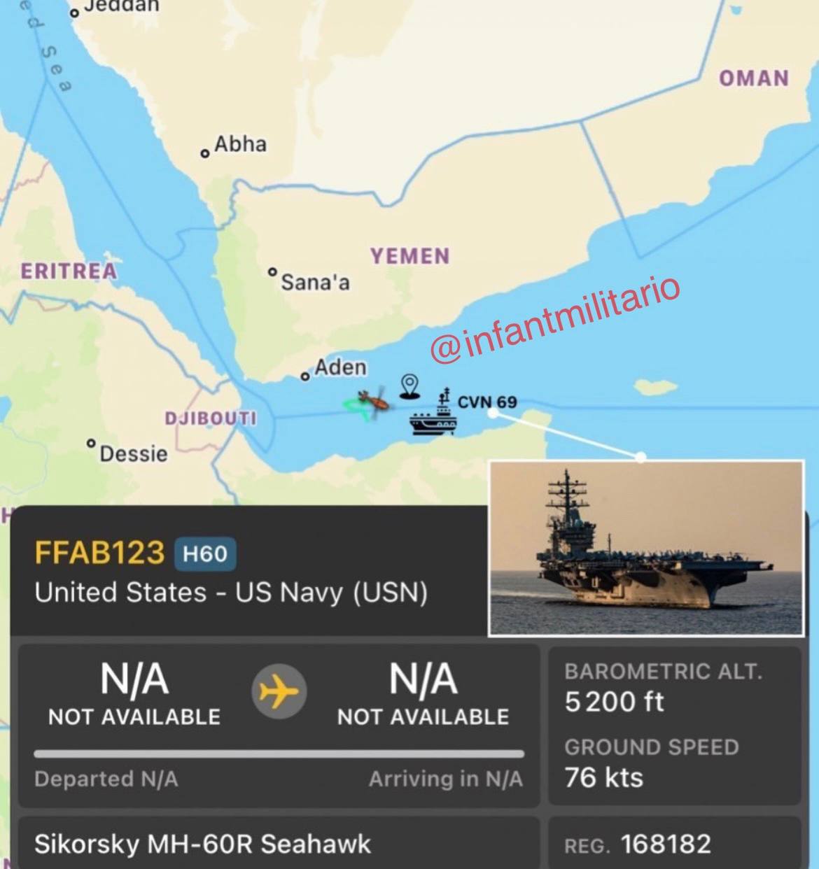 Наращивается группировка кораблей 5-го флота ВМС США и стран НАТО в южной части Красного моря – Баб-эль-Мандебский пролив – Аденском заливе. Авианосная ударная группа во главе с авианосцем «Эйзенхауэр» перешла из Персидского залива в западную часть Аденского залива.
