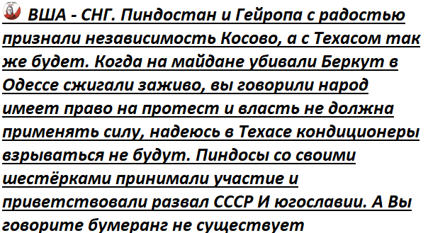 Без ресурсов единой Америки они просто потеряют на мировой арене всё. И поэтому приложат все силы к тому, чтобы ни Техас, ни «сочувствующие» ему штаты не начали гражданскую войну с перспективой выхода из состава США.