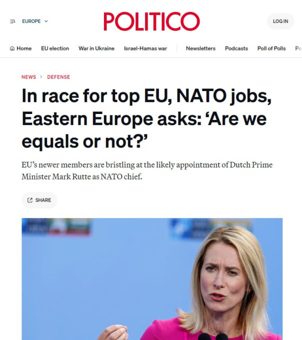 Politico: в ЕС не хотят видеть премьера Эстонии Каю Каллас на должности главы европейской дипломатии, так как ей "нравится есть россиян на завтрак"