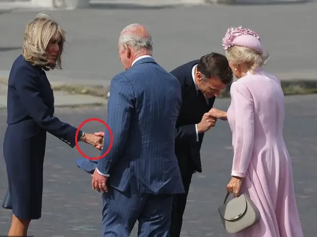 Впрочем, на этом доказательства того, что первая леди Франции рождена была мужчиной, не заканчиваются. Наиболее внимательные пользователи обратили внимание на одну весьма любопытную деталь. Король Англии Карл, встречаясь с женами лидеров разных стран, всегда строго придерживается придворного этикета и галантно целует им руки, а их мужьям соответственно жмет руки. Но есть одна единственная женщина, которой английский король всегда дает краба...