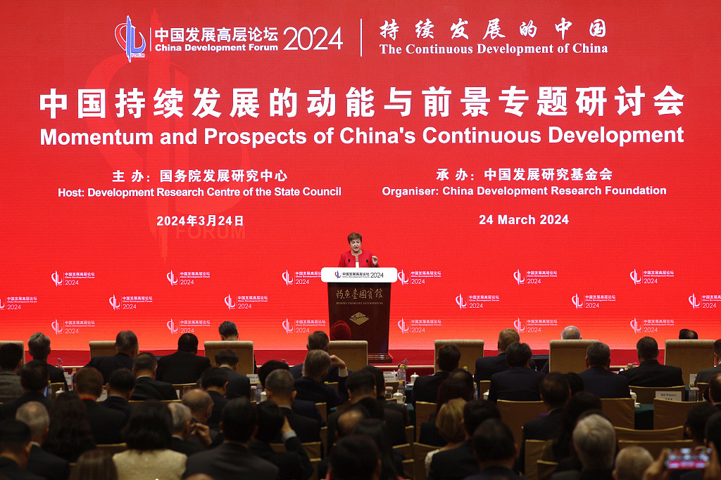 Кристалина Георгиева, директор Международного валютного фонда, выступает на Форуме развития Китая. Фото: CFP