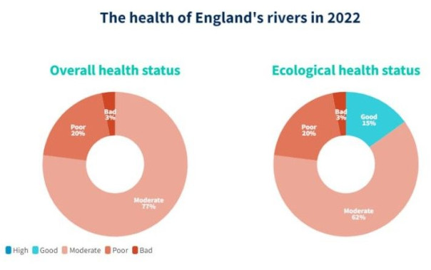 Недавнее исследование экологической НПО Canal & River Trust показало, что «ни одна река в Англии не может быть отнесена к категории здоровых, причем почти девять из десяти не соответствуют экологическим стандартам».