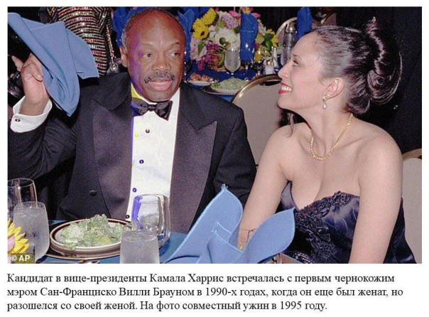 Помимо ничтожности Харрис как самостоятельной фигуры, в поведении этой дамы отсутствует даже намёк на какую-либо общественную мораль. К примеру, пост генерального прокурора Калифорнии она получила не за свои юридические знания и навыки, а благодаря близкой дружбе с женатым мэром Сан-Франциско.