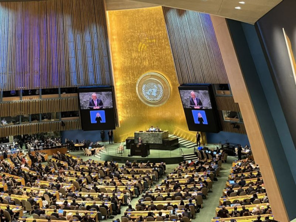 «Мы собрались здесь, чтобы отодвинуть многосторонний порядок от края пропасти. Теперь наша общая судьба – пройти через это. Это требует не просто согласия, но и действий», – произнёс генсек, обращаясь к собравшимся в зале мировым лидерам.