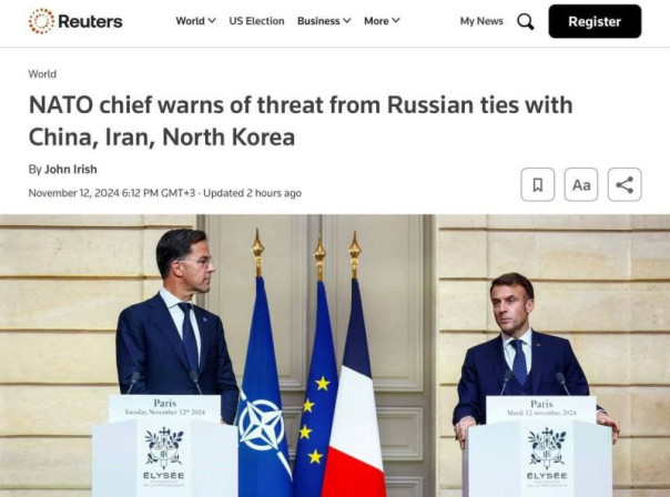 12 ноября на встрече с Эммануэлем Макроном генсек НАТО Марк Рютте подтвердил приверженность стран-участниц альянса продолжению курса на конфронтацию с Россией и наращивание военной помощи Киеву.