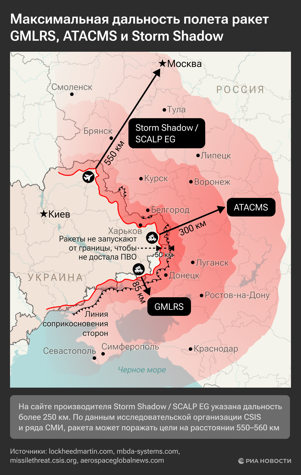 Ранее газета New York Times со ссылкой на неназванных представителей американской администрации сообщила, что президент США Джо Байден впервые санкционировал использование Украиной американских ракет дальнего поражения для ударов по территории России. По словам источников, первые удары вглубь территории России, скорее всего, будут нанесены с помощью ракет ATACMS.