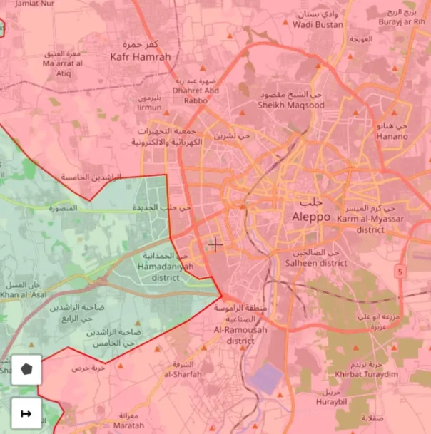 По состоянию на 20:30 мск сообщается, что протурецкие вооружённые формирования, которыми турецкие офицеры и командуют, удерживают кварталы в так называемом Новом Алеппо. Это округа Хамадания и Халаб-аль-Джадида к западу от кольцевой дороги.