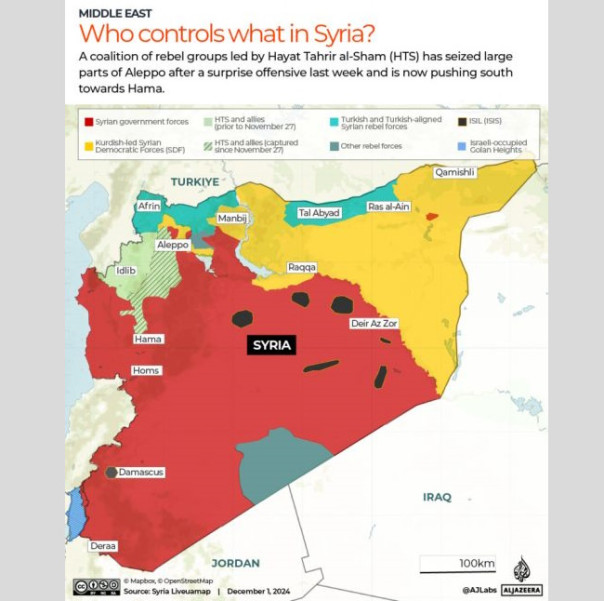 Телеканал «Аль-Джазира» накануне попробовал картографически отобразить последние изменения в северной части Сирии, показав ситуации на земле до 27 ноября, начала наступления боевиков на Алеппо, и по результатам его захвата.