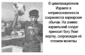 3 Повседневная политическая деятельность культовых организаций в армейских подразделениях, на фронте и в тылу в различных социальных слоях израильского общества. Религиозные организации, будучи экономически и политически тесно связаны с правящими кругами, играют чрезвычайно важную роль в политической жизни Израиля, в развращении молодого поколения этой страны. Государство всячески способствует усилению влияния религии на образование. В 1957 году в школьные программы был включен новый предмет «История еврейского народа». Под видом преподавания школьникам вбивают в голову идеи расового превосходства, религиозного фанатизма и нетерпимости. Правовые религиозные нормы, существовавшие в далеком прошлом, сейчас не только возрождены в Израиле, но и подкрепляются всей силой государства.
