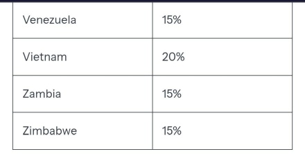 Ставка выше 15% вводится в отношении еще более десятка государств, которые не заключили торговое соглашение с Соединенными Штатами, либо с которыми сложился наиболее крупный торговый дефицит.