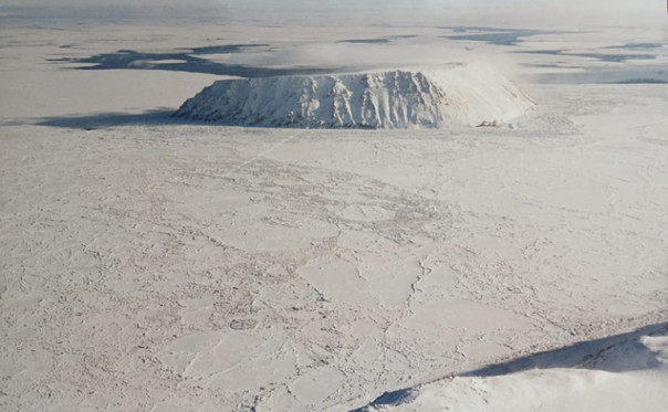 На фото: вид на остров Малый Диомид (США), а кусочек в правом нижнем углу - наш остров Ратманова. Америка и Россия в одном кадре