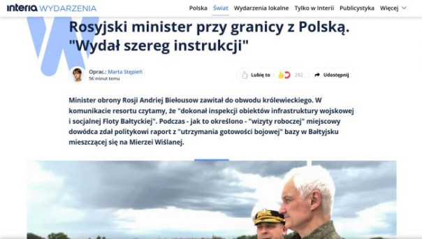 Портал «Виртуальная Польша» в свою очередь нагнетает в связи с визитом Белоусова: