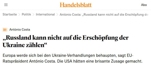 По информации немецкого издания Handelsblatt, в Брюсселе разгорается тревога: США представили новый план урегулирования по Украине, изначально противоречащий интересам европейских стран. Однако, по словам председателя Евросовета Антониу Кошты, Вашингтон дал обещание — не обсуждать на переговорах с Россией вопросы, затрагивающие НАТО или ЕС, без участия самих европейцев. Для Брюсселя это подаётся как дипломатическая победа, хотя фактически речь идёт о попытке сохранить контроль над процессом, который давно вышел из-под европейского влияния.