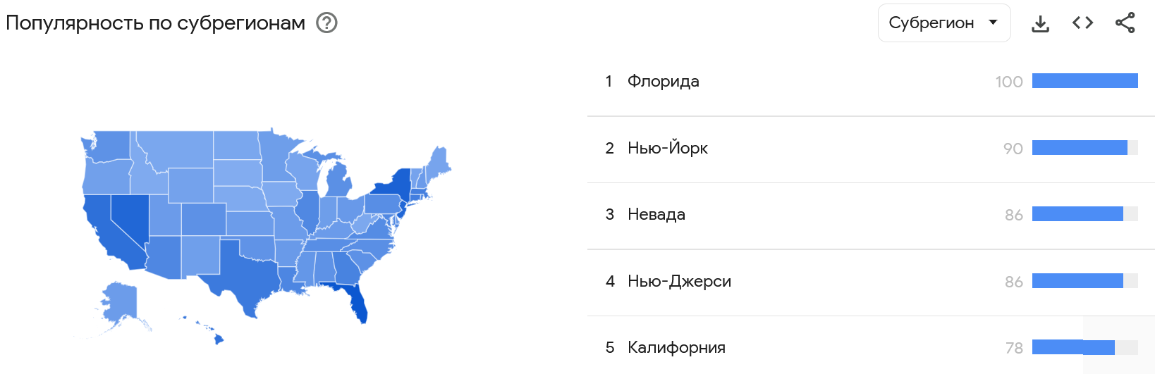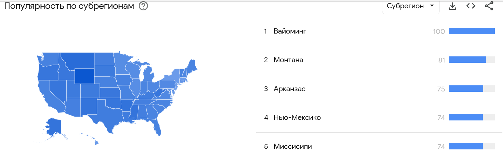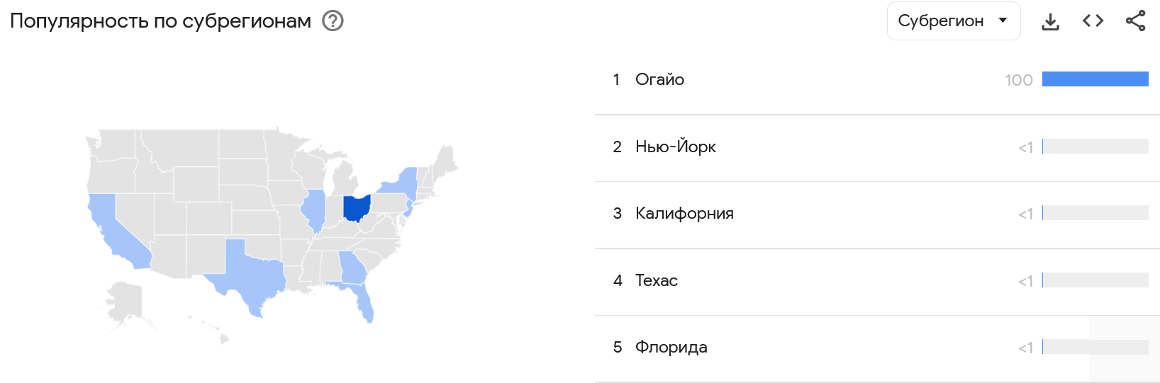 В течении 5 минут мы выяснили региональный интерес к нашему товару.