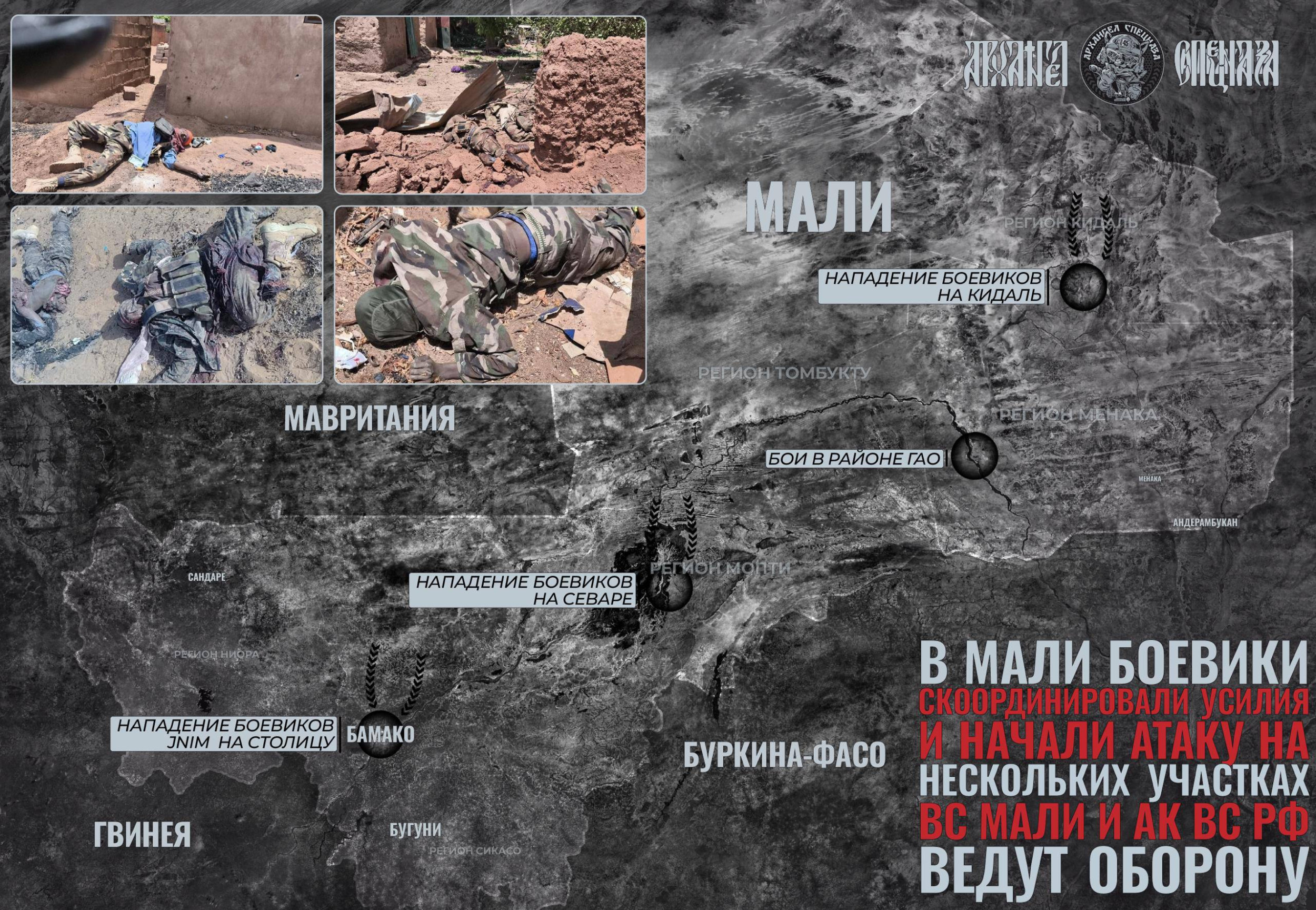 Около 10:00 по московскому времени джихадисты начали нападение на военные объекты в Кидале, Гао, Севаре и Кати. В настоящий момент контроль за ситуацией сохраняют правительственные силы при поддержке Африканского корпуса.