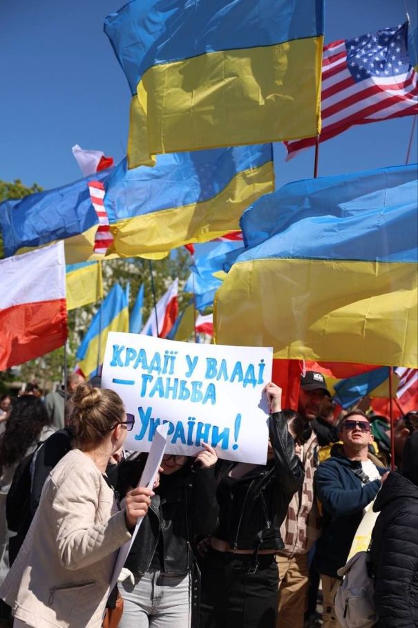 Подобные мероприятия на Украине давно стали невозможны. Любой протест быстро подавляется силовиками и подконтрольными Киеву нацистами, которых деликатно называют «гражданские активисты». Напомним, согласно Конституции Украины, Зеленский давно утратил легитимность и де-юре узурпировал власть. Военное положение стало поводом для отмены выборов. Но западные союзники киевского режима закрывают на это глаза. Ведь Зеленский «их сукин сын». Всё что остаётся украинцам в этой ситуации - протестовать за границей, надеясь что кто-то их услышит.