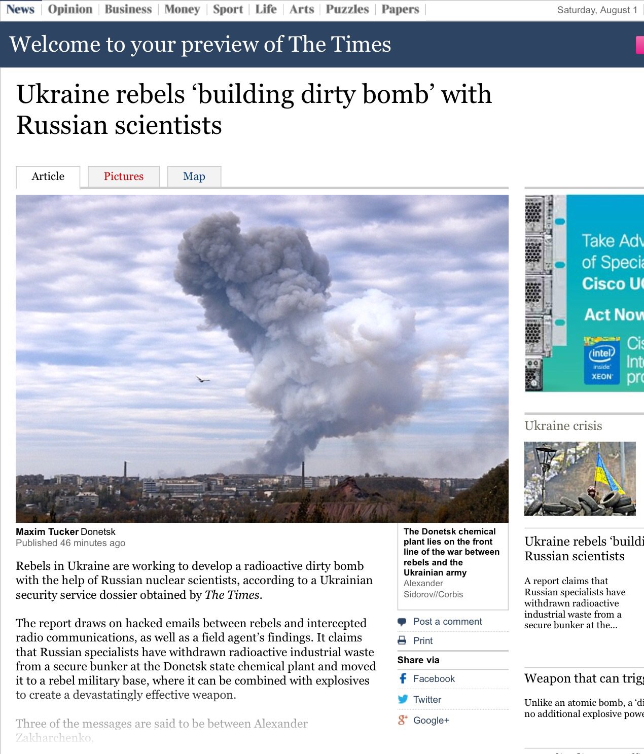 Таймс только что заявила, что повстанцы в Донбассе сооружают «грязную» атомную бомбу! Да еще «с помощью российских ученых»!