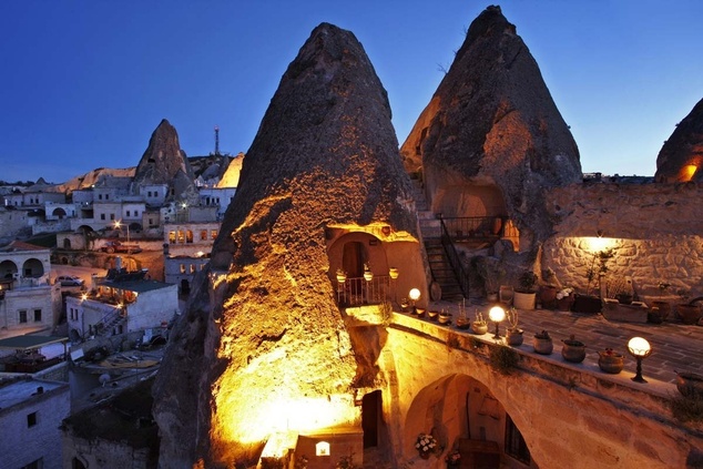 Почувствовать себя пещерным человеком можно в отеле «Келебек», номера которого находятся в самых настоящих пещерах. Почти вся мебель здесь также либо вытесана из частей пещеры, либо из отдельных камней. Конечно же, в отеле при этом есть все удобства, а терраса и ресторан находятся сверху. Оттуда открывается прекрасный вид на старинный городок Гёреме, который был основан среди живописных скал еще древними римлянами.
