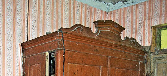 В конце XIX века на отдельных хуторах стали пользоваться уборными оригинального вида, которые напоминали стенной шкаф. На снимке туалет-шкаф начала ХХ века с хутора Альби.