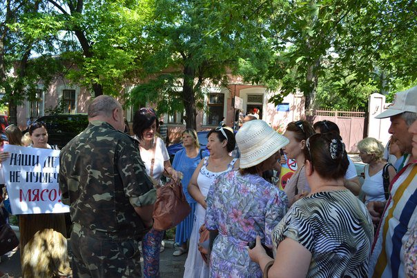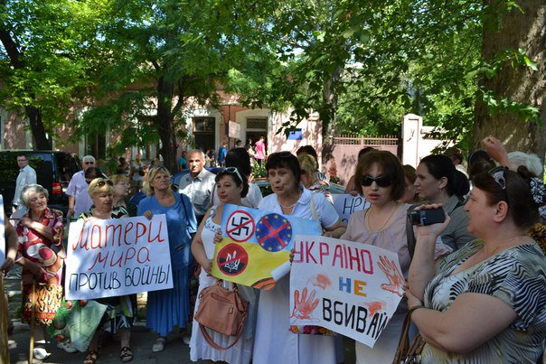 Сегодня, 10 июня, к зданию Херсонского областного военкомата пришли матери Херсона. Женщины пикетировали здание, чтобы прекратить гражданскую войну на территории Украины. Матери, жены против, чтобы их мужья и сыновья принимали участие в войне, чтобы украинцы убивали друг друга. Свои требования они озвучили областному военкому С. Коке и заместителю начальника областного военкомата, депутату Херсонского горсовета, А. Бондаруку.