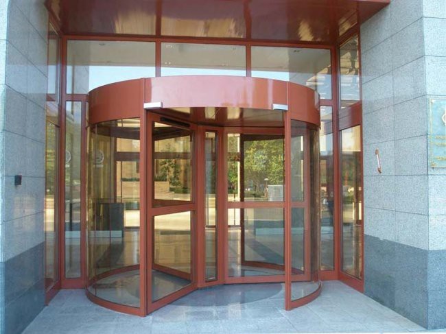 Филадельфийский изобретатель Theophilus Van Kannel получил первый в США патент на вращающейся двери в 1888 году. В Нью-Йорке, в государственных зданиях скорость вращения дверей не должна, по закону, превышать 15 оборотов в минуту.
