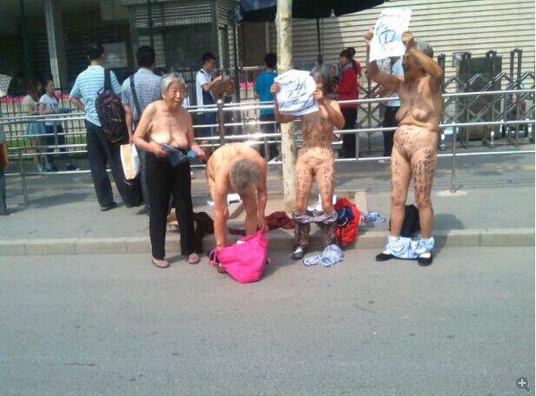 Четыре старушки от 65 до 73 лет обнажились перед посольством США в Пекине. Таким образом они выразили протест против коррупции и произвола правоохранительных органов в провинции Хэнань, откуда они родом. Старушек быстро повязали столичные полицейские.