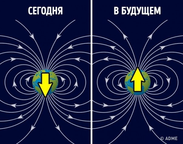 Магнитные полюса Земли могут сдвигаться и даже полностью менять свое направление. Исследуя вулканические камни, ученые выяснили, что магнитное поле нашей планеты менялось уже много раз. Последнее такое событие было почти 10 млн лет назад и, вероятно, произойдет в будущем. Однако до сих пор точно неизвестно, почему так случается.