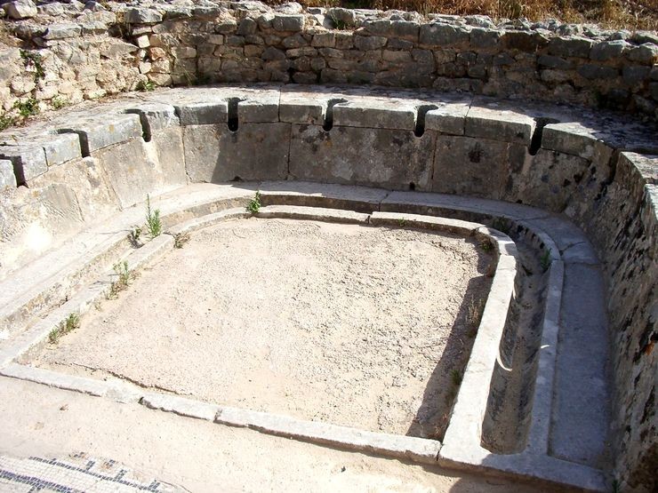 Каждое «посадочное» место – каменная плита с отверстием, выложенная плиткой. В центре помещения был фонтанчик, от которого по канавкам вода растекалась к стульчакам. Сделав свое дело, человек специальным кувшинчиком черпал воду и подмывался. Посадочные места, как правило, располагались по кругу, чтобы все видели собеседников.