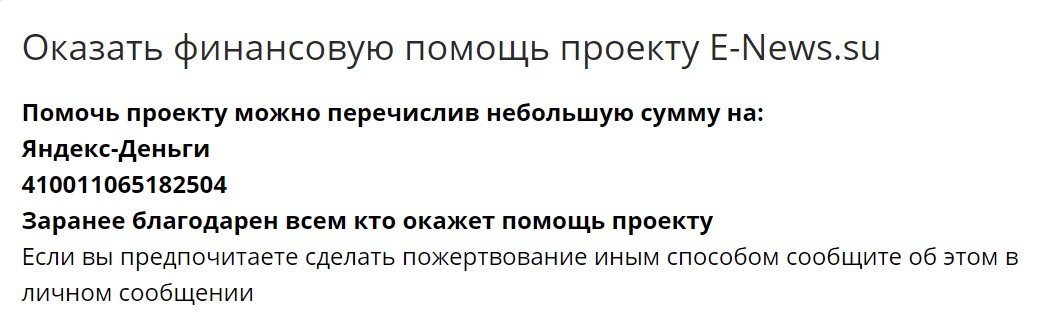 Оказать финансовую помощь сайту E-News.su | E-News.pro