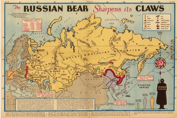 Американская карта 1938 года с Тувинской Народной Республикой между Монголией и СССР