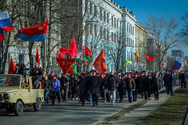 Конечной точкой марша стала площадь Петровского, где 16 марта планируется установить мемориал в память воинов Красной Армии, погибших от рук бандеровцев.