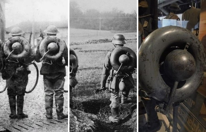 Первая мировая война стала одним из самых больших полигонов в истории человечества для испытания принципиально новых видов вооружения. Сравниться с ней в этом плане может разве что Вторая мировая война. На некоторых старых фотографиях время от времени попадаются немецкие солдаты с каким-то «колесами» или «бубликами» за плечами. Вопрос: что это за штуковина такая и зачем она нужна?
