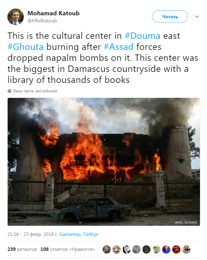 По мере того, как развивались события, Совет безопасности ООН выработал для Сирии резолюцию о прекращении огня в Гуте, которую Россия блокировала, заявив: Москва согласится на резолюцию только при условии, что прекращение огня не будет применяться к поддерживаемым США террористическим силам. США не согласились с этим пунктом и в ООН его вычеркнули. Тогда Россия начала бомбить Гуту, а в ООН бросились документ переписывать так, как это хочет Россия. Но, похоже, с новой редакцией резолюции в ООН немного подзадержались и к утру 24 февраля Гута больше не существует, Россия выбила все дерьмо (Russia is now kicking the living crap out of those rebels) из местных «террористов».