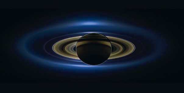 Когда Сатурн заслонил яркие лучи Солнца, камеры "Кассини" сделали панорамный снимок планеты и ее колец. станция, появившаяся на свет в результате сотрудничества трех космических агентств, собрала данные, открывающие новые научные горизонты