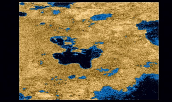В приполярных областях Титана расположены углеводородные озера (вверху) — впадины, заполненные этаном и метаном. В таких условиях может развиваться жизнь