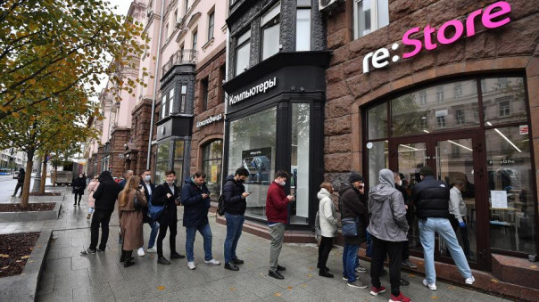 Очередь в магазин re.Store за новыми iPhone 12, Москва, 23 октября 2020 года