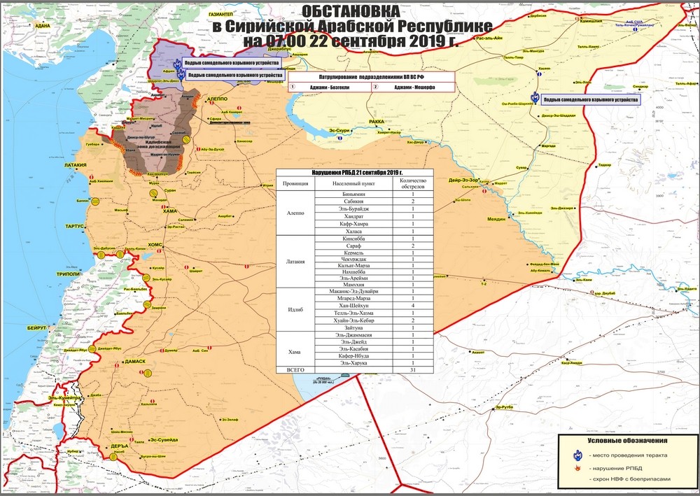 Справка по обстановке на территории Сирийской Арабской Республики на 22 сентября 2019 г.