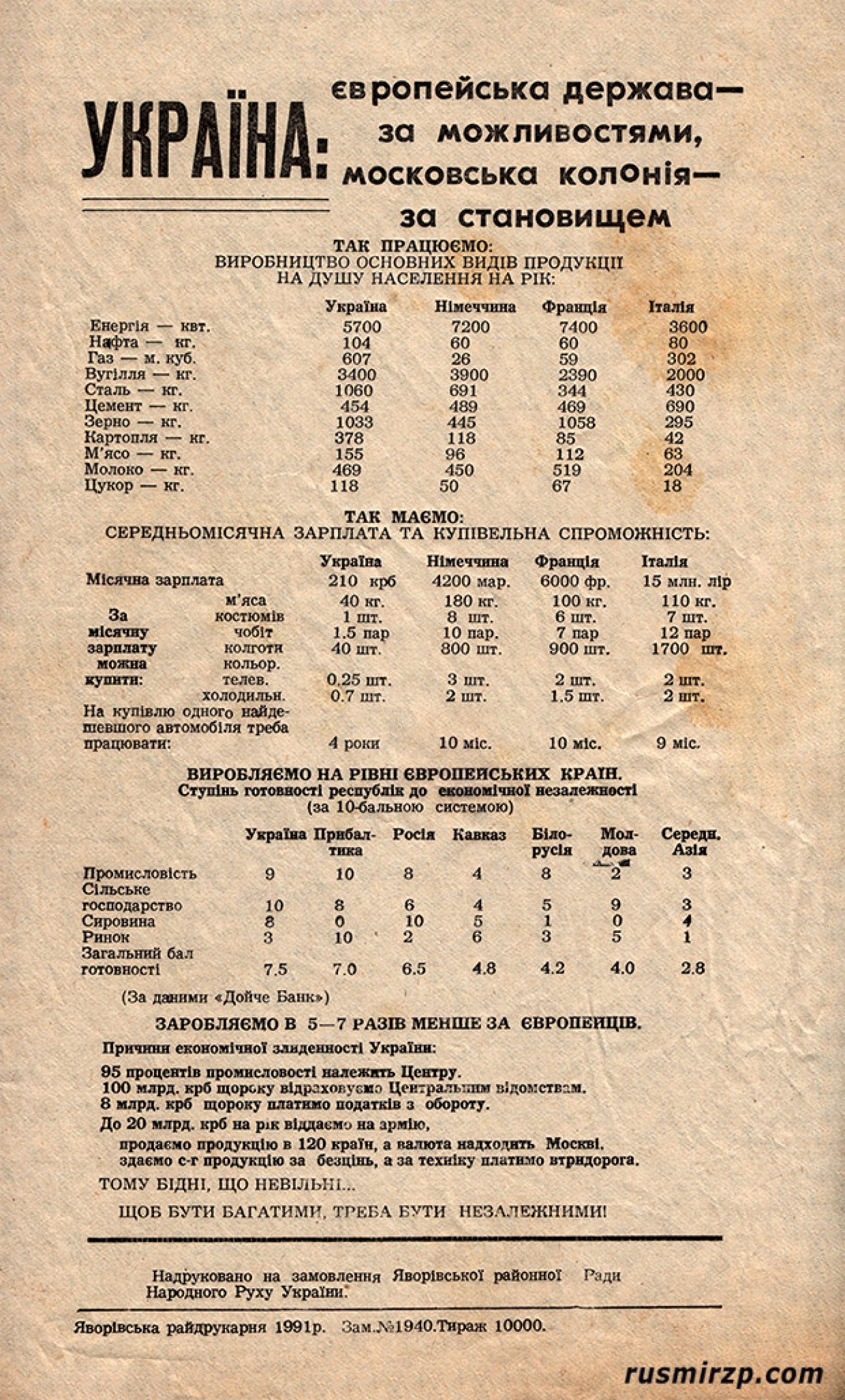 «Тому бідні, що невільні», — поговаривали западные украинцы, не принимая всерьез слова своих оппонентов. Да только отчего-то после предоставления свободы богатства как по взмаху волшебной палочки куда-то улетучились.