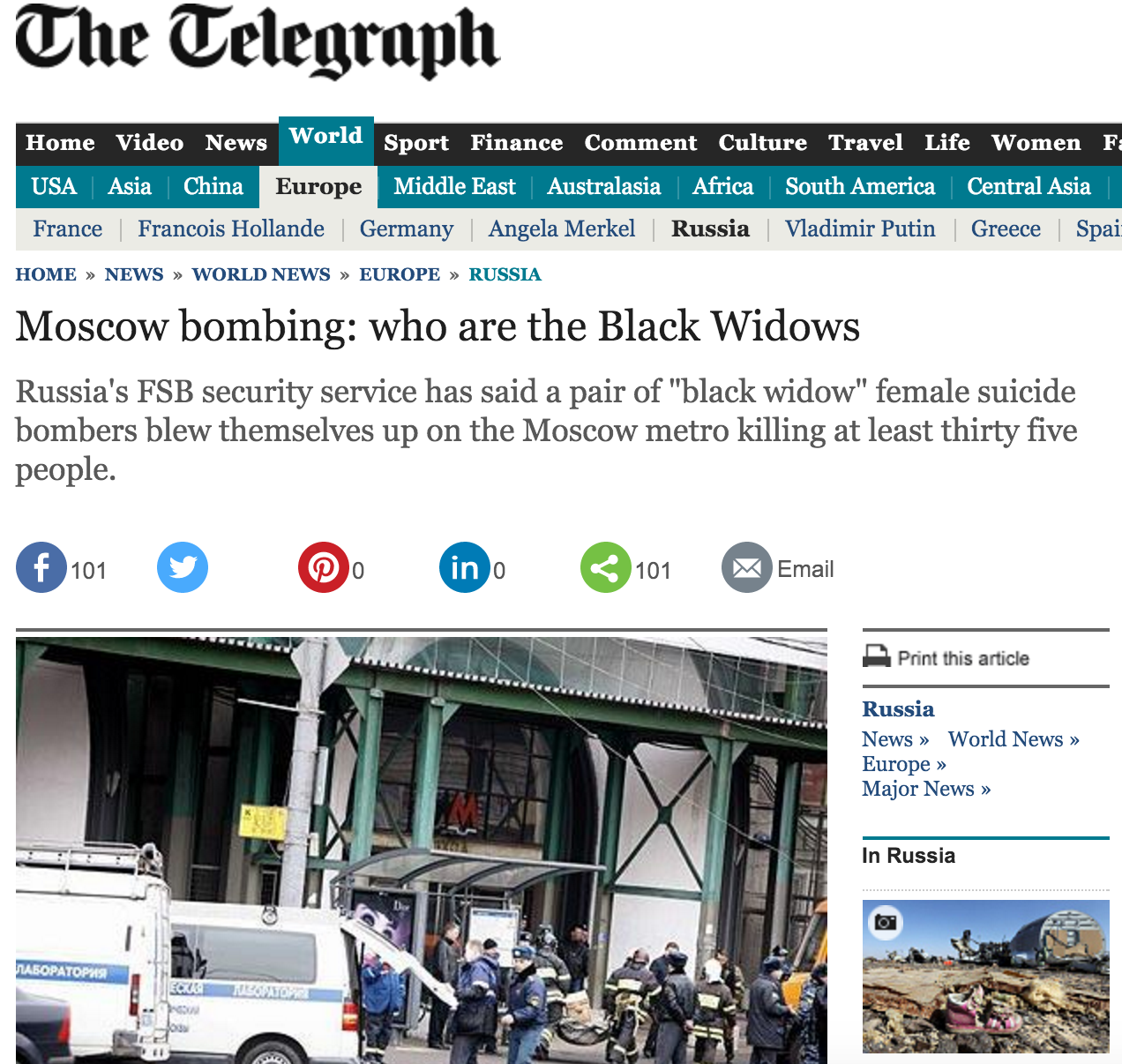 Time: "За последние годы исламский терроризм не смог нанести ни одного сильного удара нигде за пределами афганско-пакистанского региона и Ирака. Нигде, за исключением России. Фактически можно сказать, что российское правительство своими действиями за последние два десятилетия внесло намного больший вклад в создание крупнейшего и наиболее активного нового центра исламского терроризма в современном мире, чем Усама бен Ладен". >>>