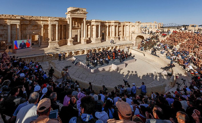 В освобождённой от игиловских головорезов (причём это не пропагандистский оборот, а доказанный факт) Пальмире прошёл концерт оркестра Мариинского театра под руководством Валерия Гергиева.